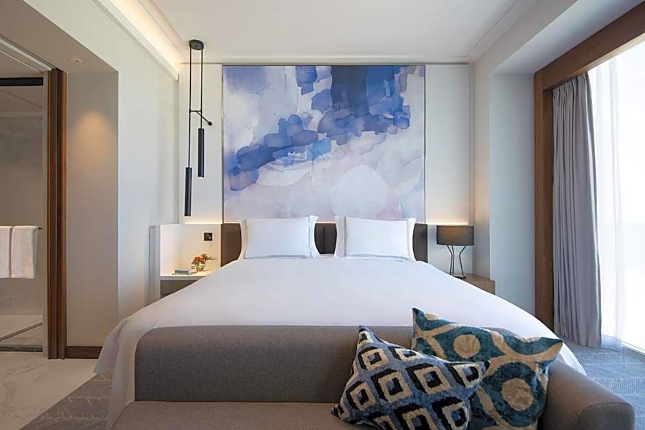 Signature suite with panoramic Mediterranean sea views, spacious living and dining area. Includes access to Horizon Lounge on floor 22 (age 13+).